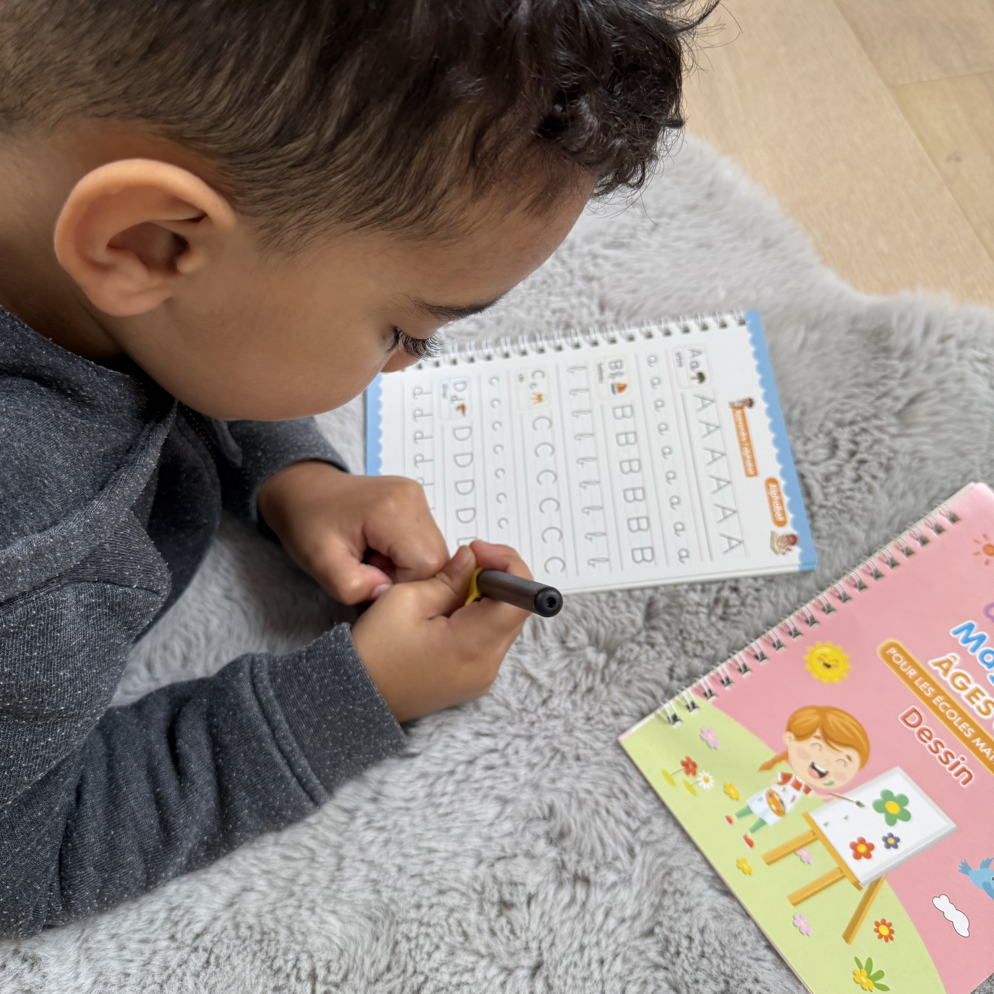 Ils accompagnent l’apprentissage progressif de l’écriture, des chiffres, des formes et de l’alphabet.